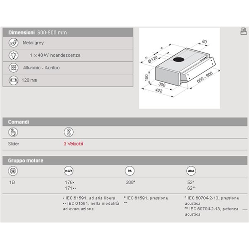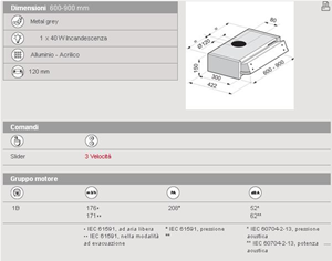 CAPPA ESTRAIBILE DA 60 CM. GRIGIO